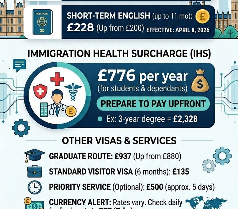 Staying updated on immigration costs is crucial for your study abroad journey. Starting April 8, 2026, the UK government is implementing new fee structures for Student Visas and the Immigration Health Surcharge (IHS).